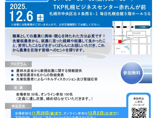 【北海道農政事務所】先輩が語る!新規就農セミナーを開催します。