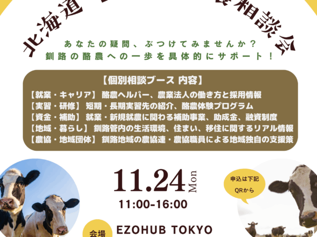 【釧路総合振興局農務課】北海道・釧路の酪農就農・移住相談会